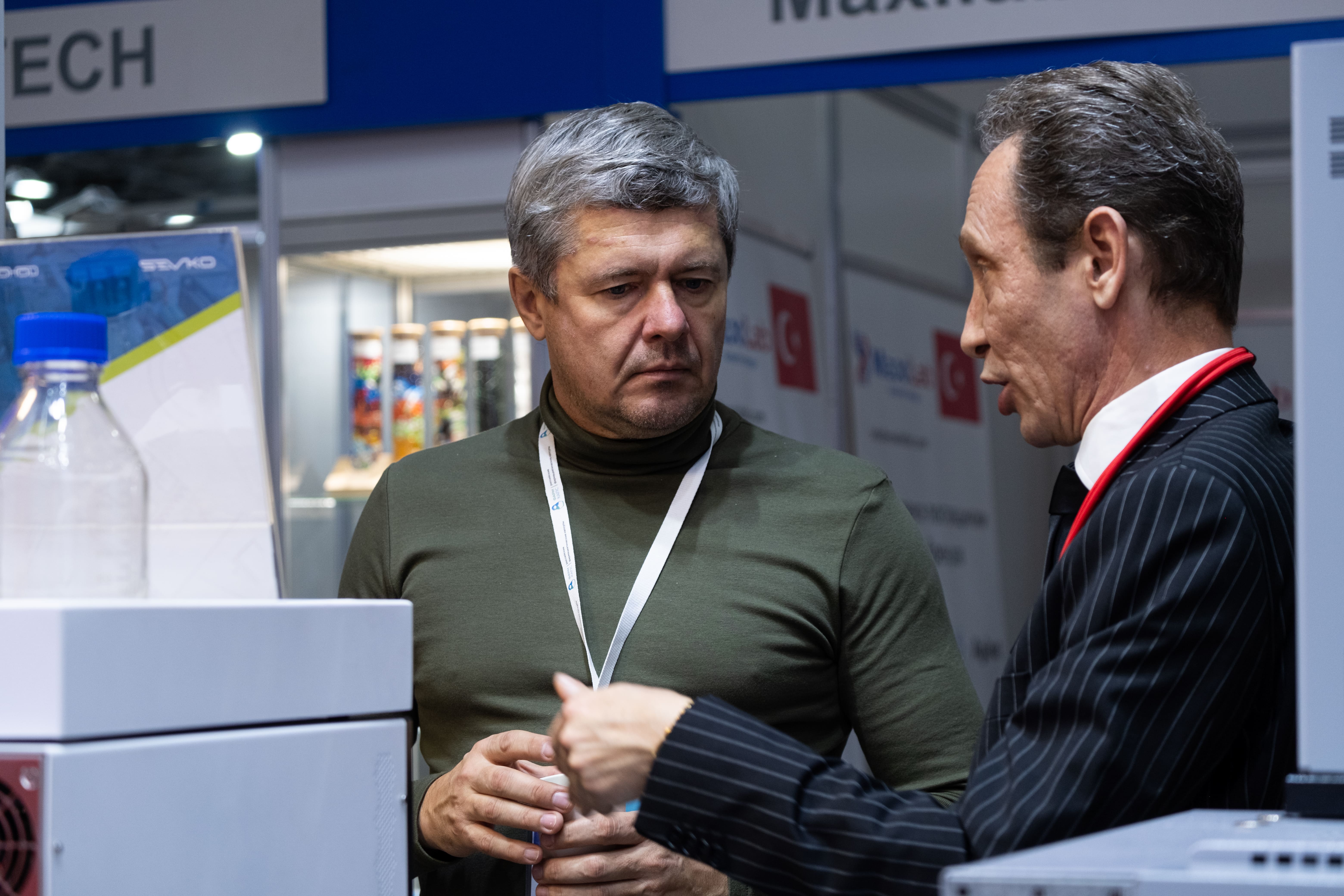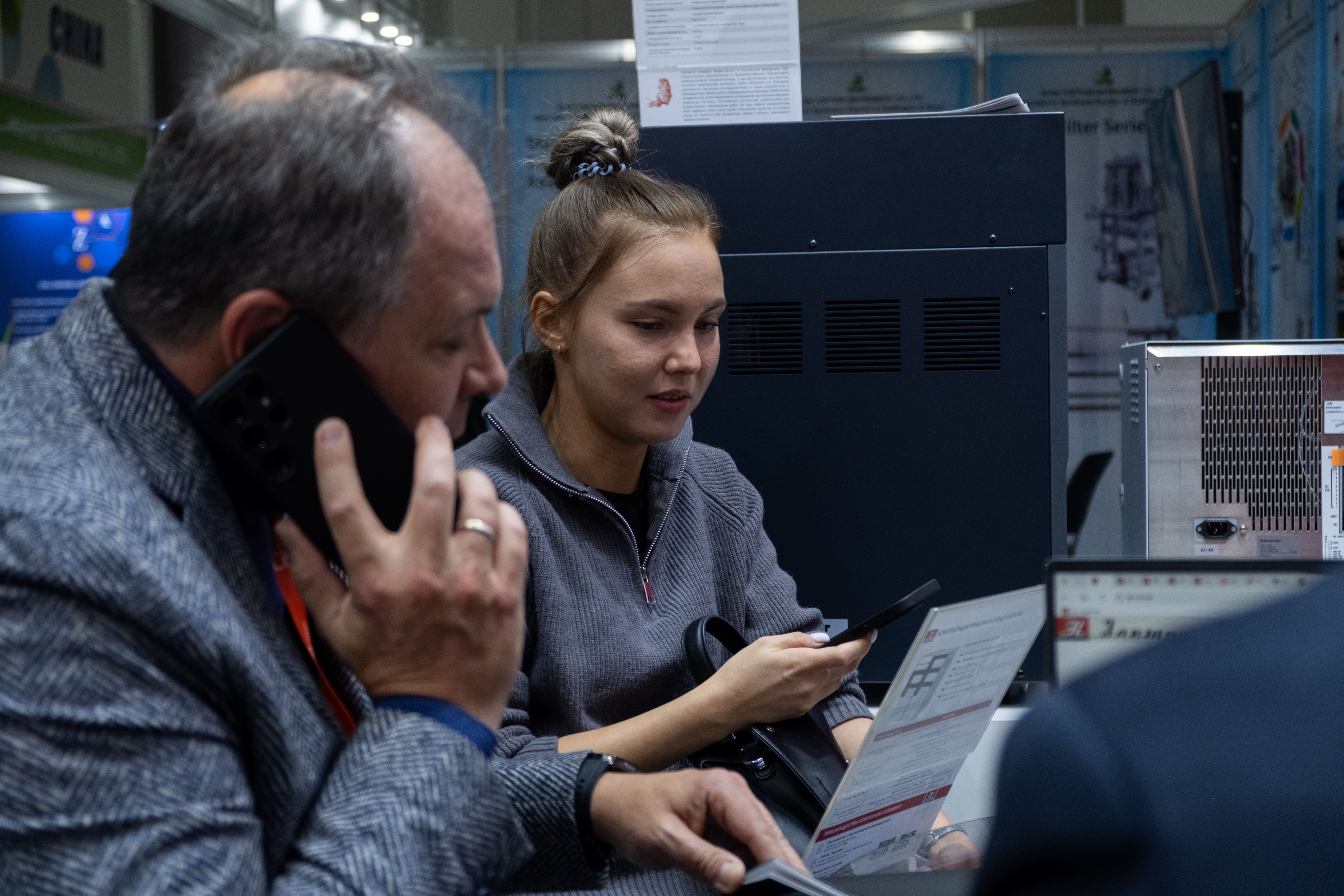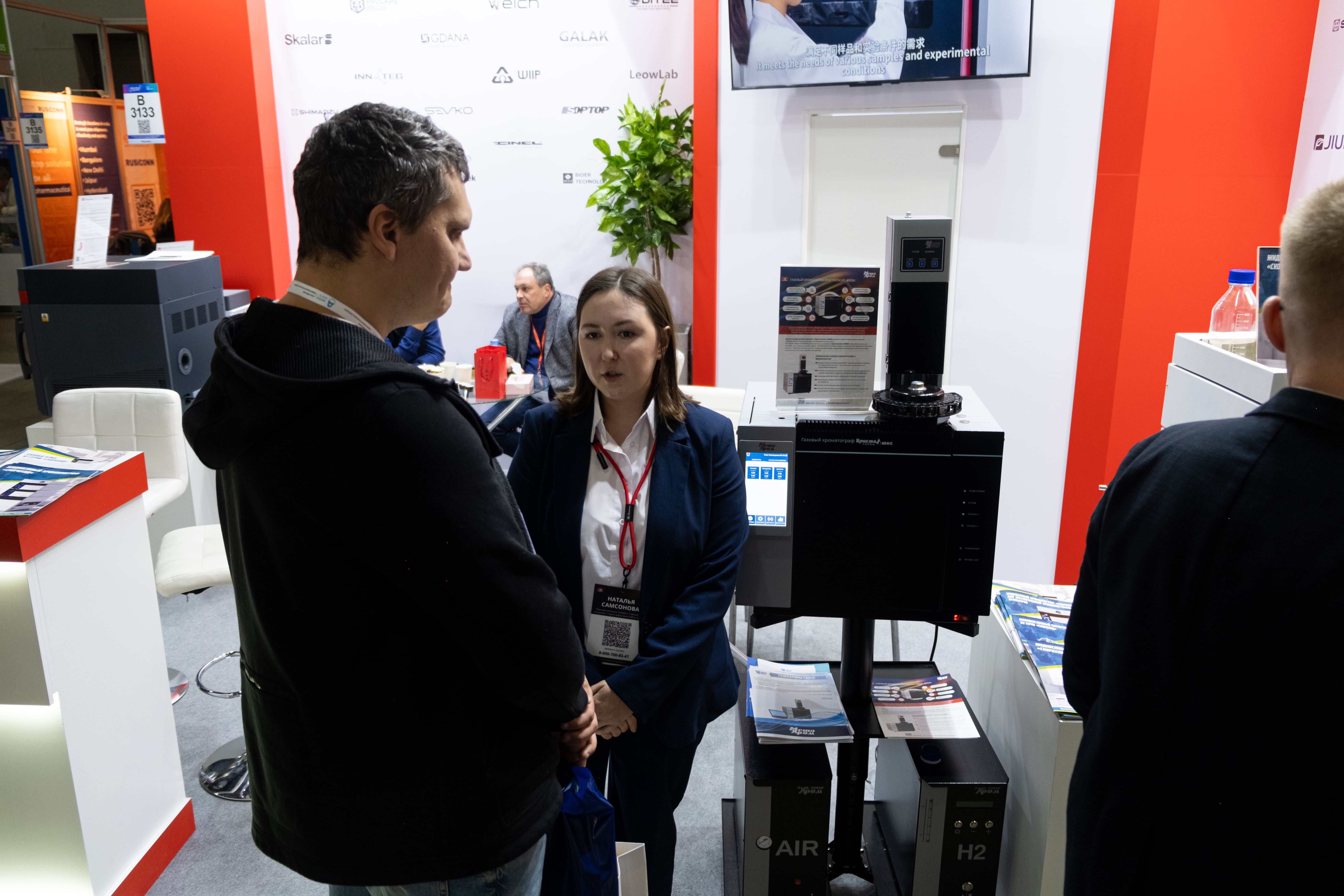 Особое внимание на стенде мы уделили переговорным зонам. Они практически не пустовали: здесь мы проводили встречи с действующими клиентами, обсуждали планы по модернизации лабораторий, подбирали комплектации хроматографических систем и систем пробоподготовки под конкретные задачи предприятий.