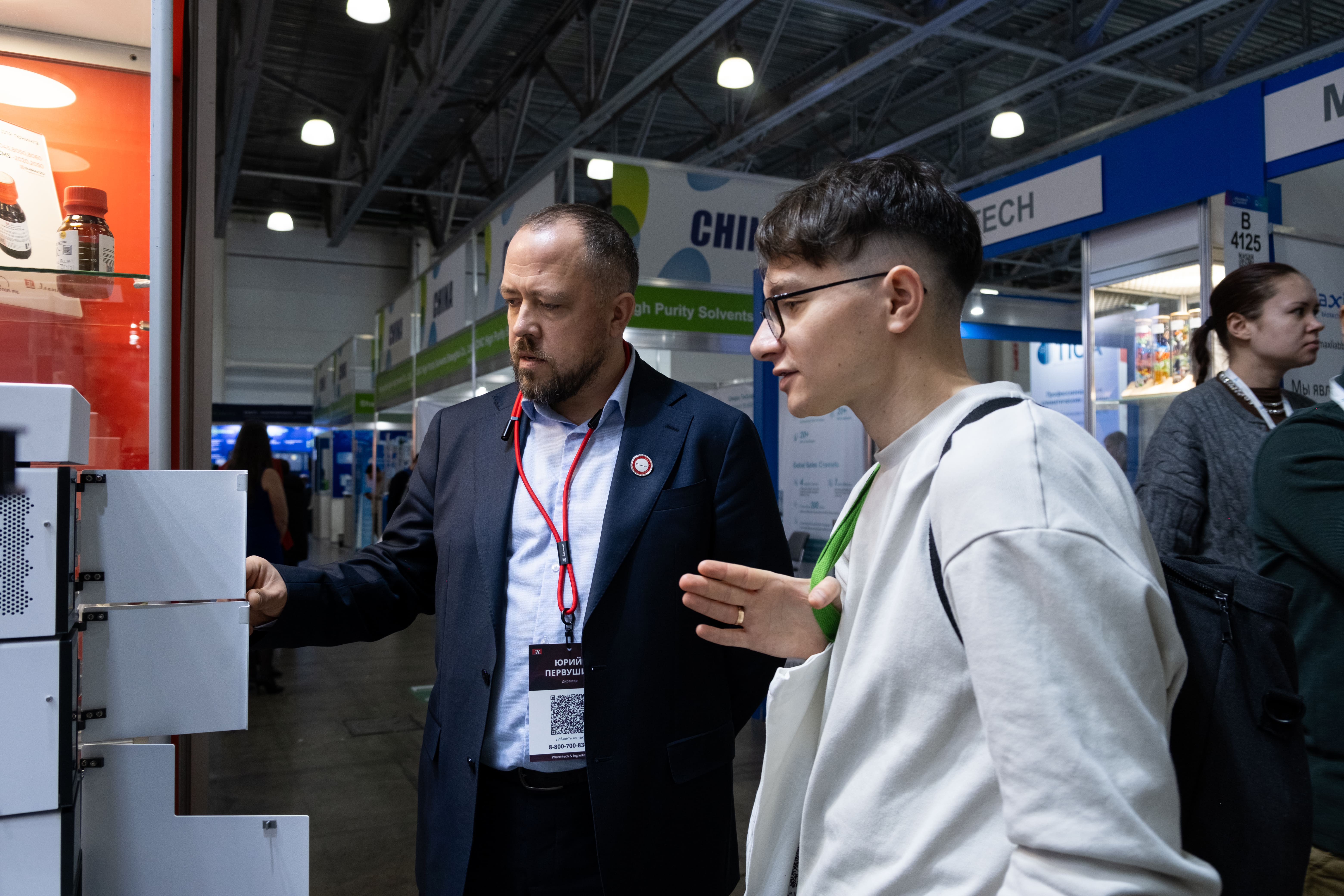 После выступления к нам на стенд подходили слушатели деловой программы:- задавали уточняющие вопросы по конфигурациям и возможностям ВЭЖХ-систем «Скороход» для фармацевтического анализа;